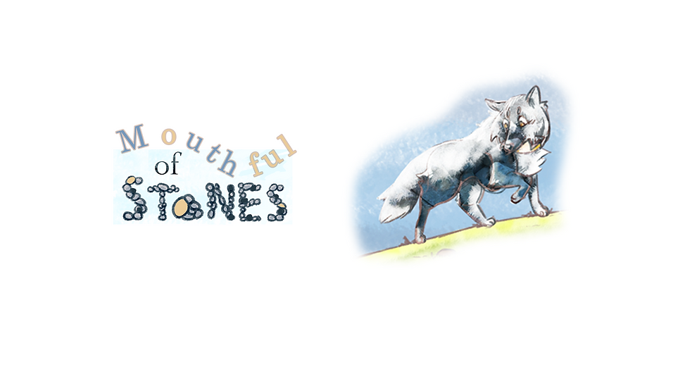Mouthful of Stones is a children's illustrated book depicting the family of Mum, Dad, Alan and Jen and their dog, Saffy however, Saffy’s obsession with collecting stones causes upheaval in the family's life. Gradually they come to understand and participate in Saffy's interests which brings them all closer as a family.